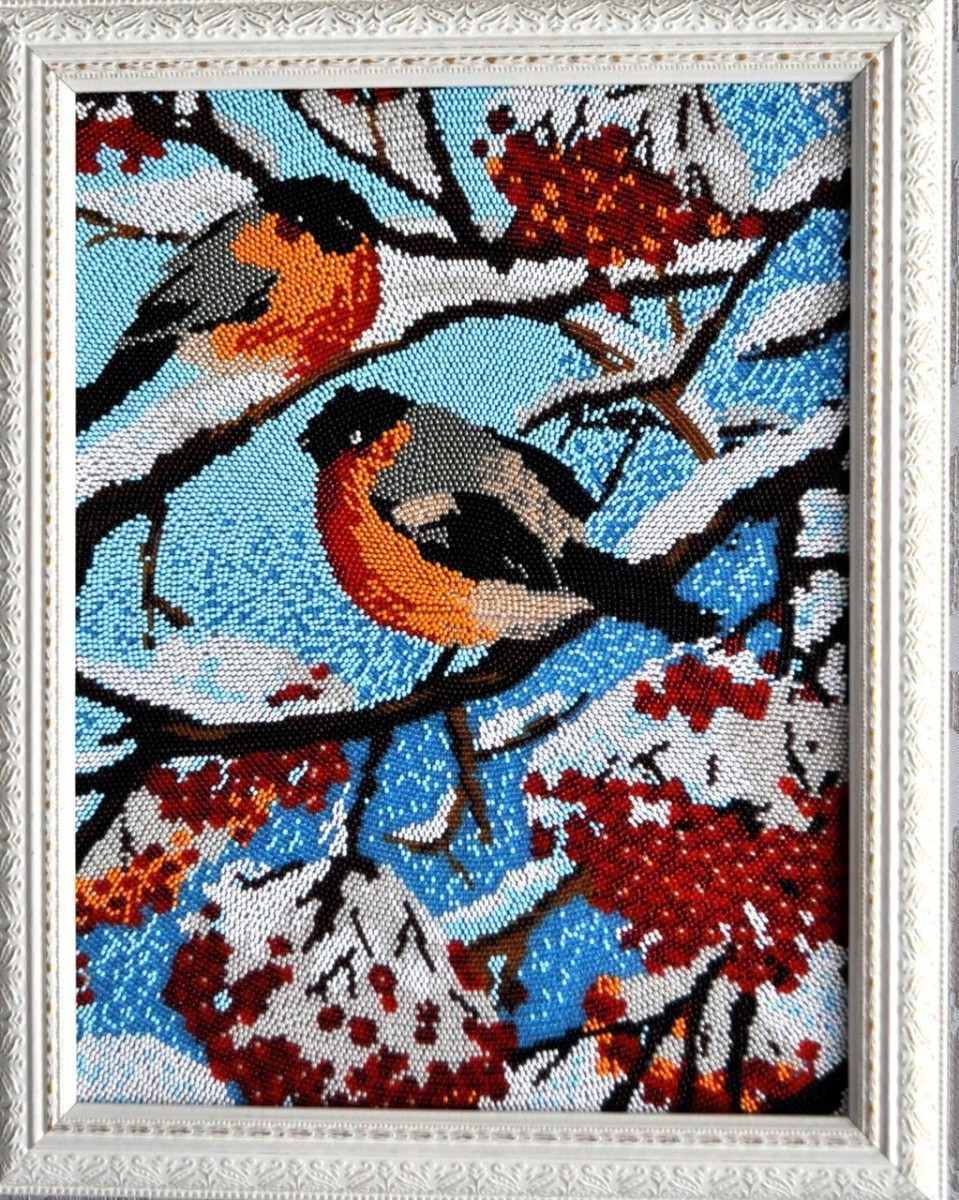 "Снегири" Рисунок на ткани