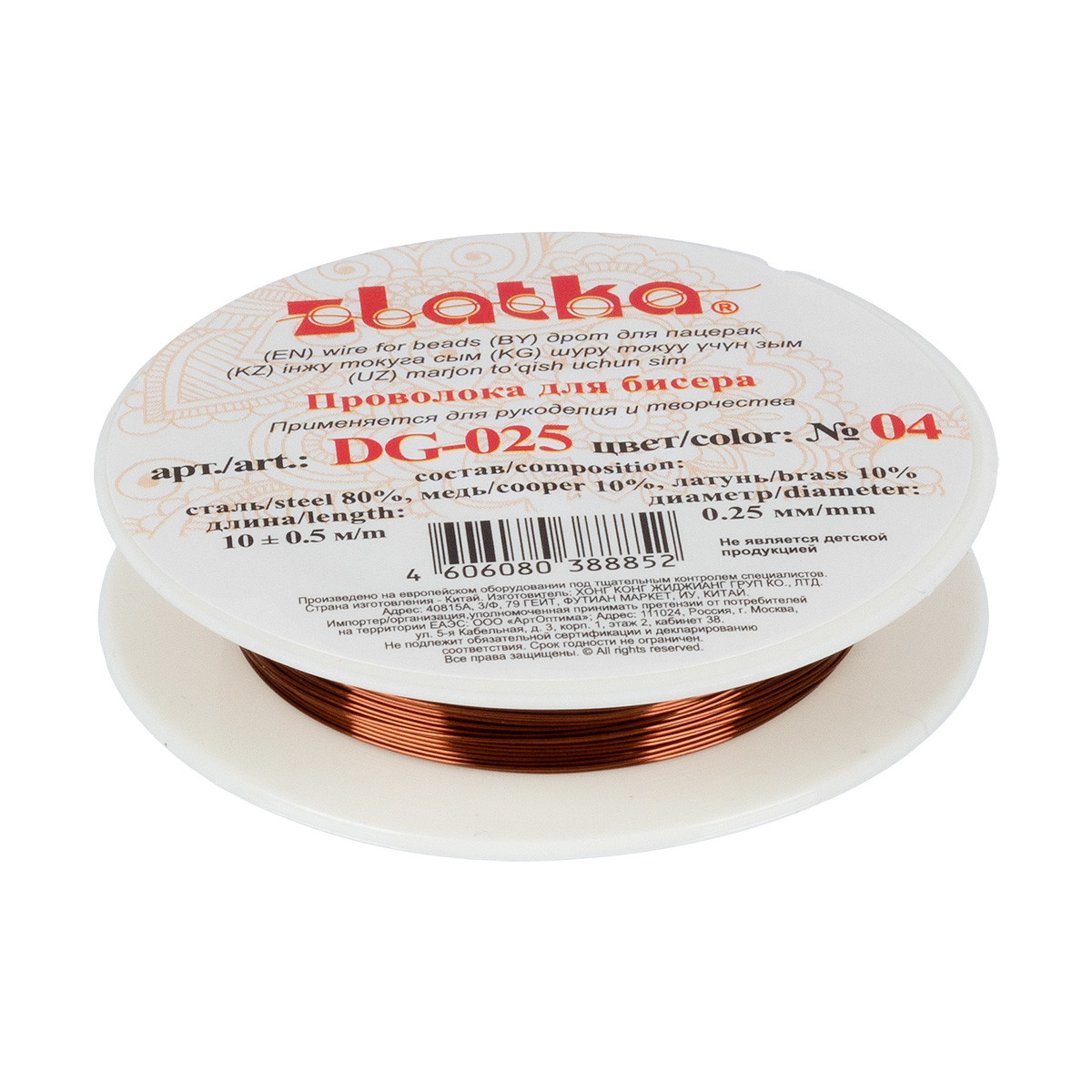 "Gamma" Проволока для бисера металл DG- 025 d 0. 25 мм 10 м №04 под медь